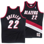 Men’s Clyde Drexler Portland Trail Blazers Mitchell & Ness Black/Red/White Hardwood Classics Swingman Jersey
