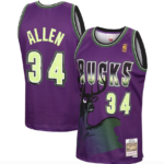 Men’s Ray Allen Milwaukee Bucks Mitchell & Ness 1996-97 Hardwood Classics Reload Swingman Jersey – Purple