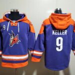 Men’s Arizona Coyotes #9 Clayton Keller Purple Orange Lace-Up Pullover Jersey Hoodie