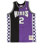 Mitch Richmond 1994-95 Authentic Jersey Sacramento Kings. Polyester textured mesh body. Body is cut & sew black & purple with jacquard rib knit side inserts. Four color front logo / number & back number. Two color twill back name. Embroidered name / year id patch at lower left front.